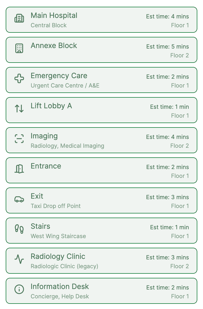Hospitals are high stress environments where getting lost isn't just an inconvenience, it's a critical failure. My challenge was to replace confusing static signage with a digital companion: a web based, 2D/3D wayfinding system, that guides patients anywhere in the Hospital with the same ease as a GPS, ensuring that physical or language barriers never delay care.