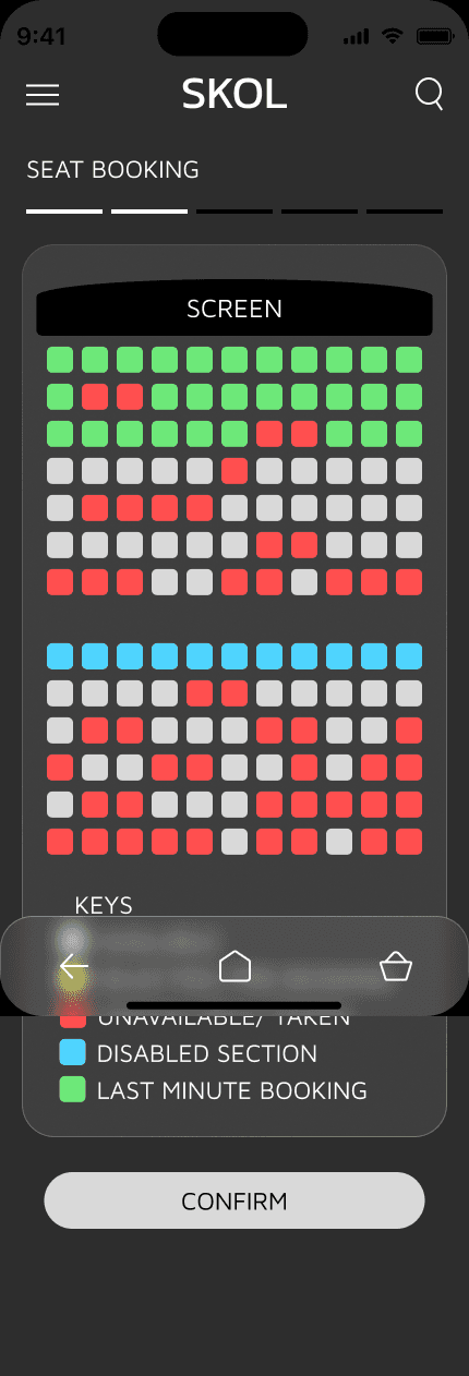 Skol is a streamlined movie theatre seat reservation app designed to eliminate the friction and clutter common in traditional booking platforms. Done as a comprehensive UI/UX case study, the project addresses the complexities of modern cinema apps. By prioritizing a minimalist interface and an intuitive user journey, Skol aims to get rid of the intrusive ads, confusing navigation and lack of accesibility in cinema apps. By focusing on the needs of both spontaneous moviegoers and routine enthusiasts, Skol simplifies the selection process through clear visual hierarchies and inclusive design features, ensuring that booking a seat is as enjoyable as the movie itself.